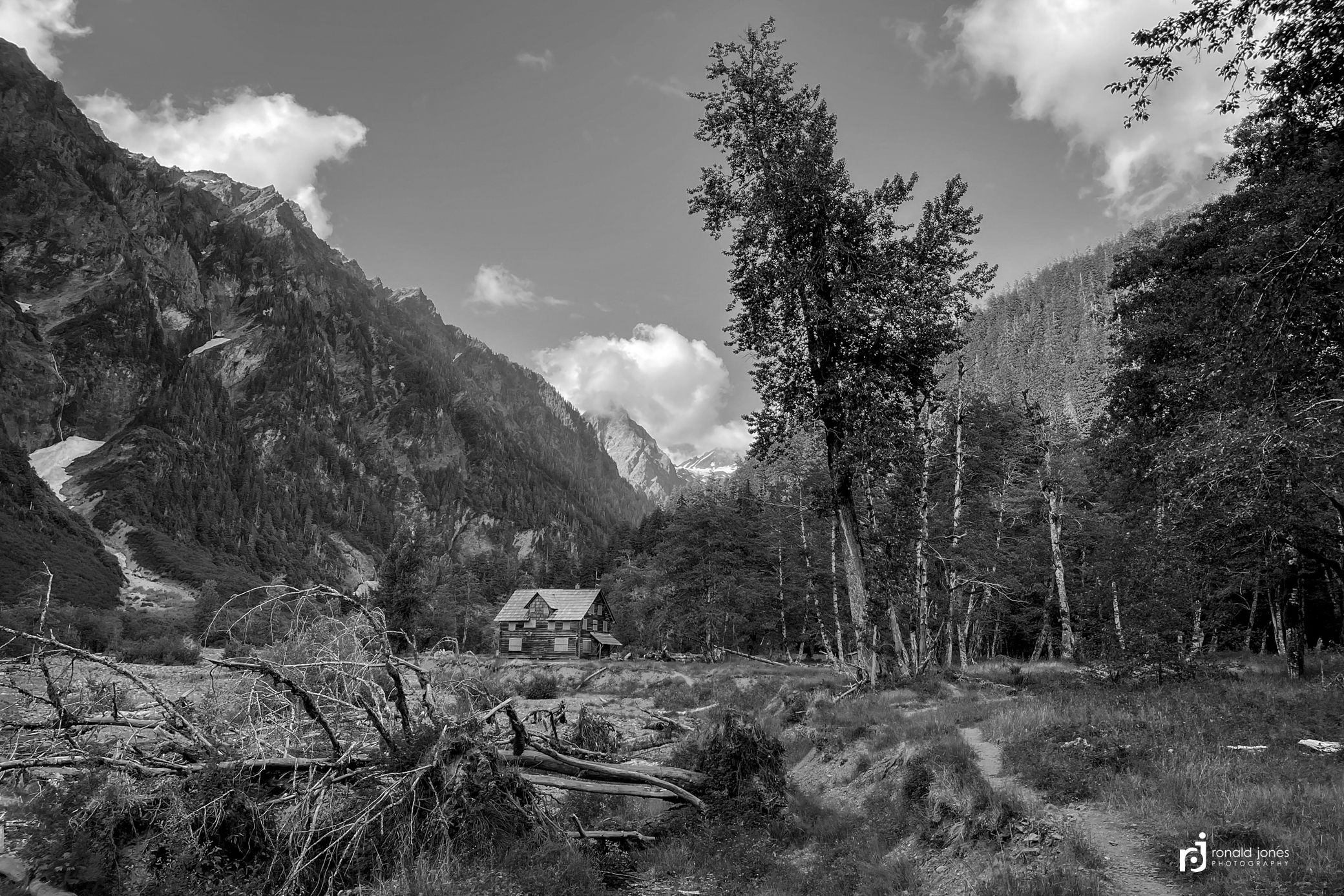 Jean was the first to spot Elk in one of the first tree’d meadows. They were near the edge where the forest is thicker. We had been talking a lot on and off, but had grown more silent around mile 8-9 as we went up over another little hump. The trail itself rises gradually with about 3000′ total gain from the trailhead to the Enchanted Valley. There is one big hump at the start and many little humps along the way. So as we going up the hump just before reaching Pyrites Creek, I’m in lead with Jean and Andy behind.