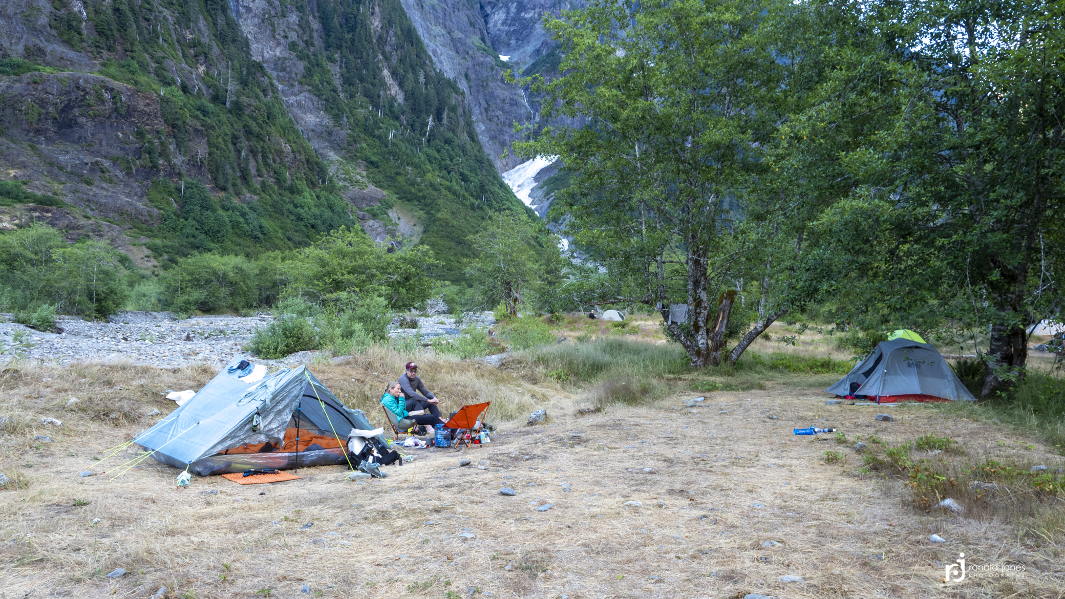 We arrived at the Valley around 3:30PM, about 8 hours of hiking with breaks. We enjoyed the sights, clear skies with patchy clouds and an abundance of tents and people. After scoping a couple spots we chose a nice one that was fairly close to the river and not far from the privy. Maybe a bit close to the privy because when the breeze blew our way, it was a bit ripe. ONP has made little outhouse privy’s because without them, the number of people would result in catholes, feces and toilet paper everywhere.