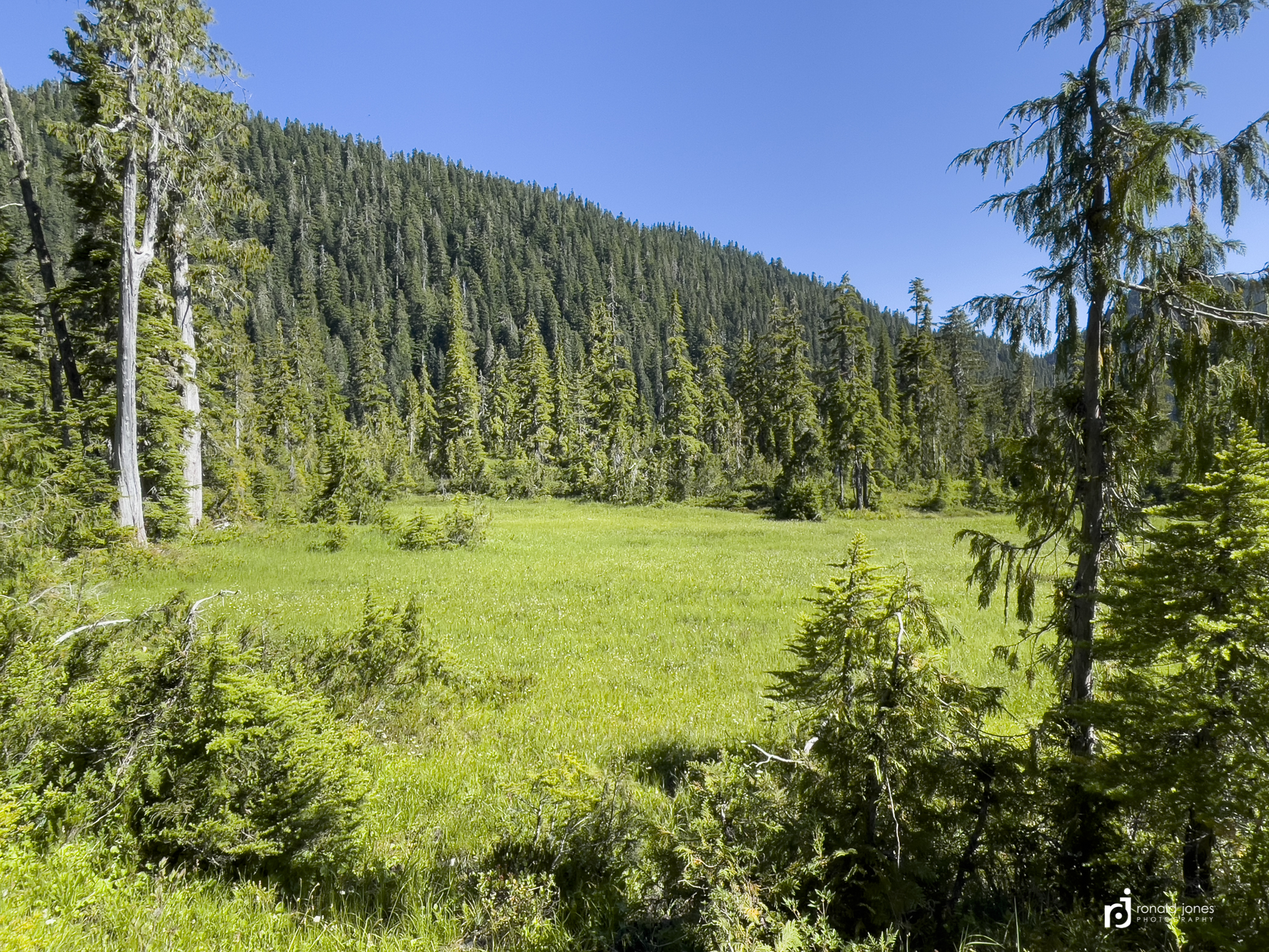 The first three miles or so had received a lot of trail maintenance recently. But then things got brushy. Not bushwhacking, just that the trail was getting encroached on the sides. Much of the trail is like walking up a narrow single track river bed! And one is climbing for the first 7 to 8 miles before getting onto a ridge of sorts with quite a few meadows. Bugs were’t bad at all – a few but not overly bothersome. We saw quite a few blueberry and huckleberry bushes throughout the day, but none of the berries were sweet. Still tart even though they appeared ready.