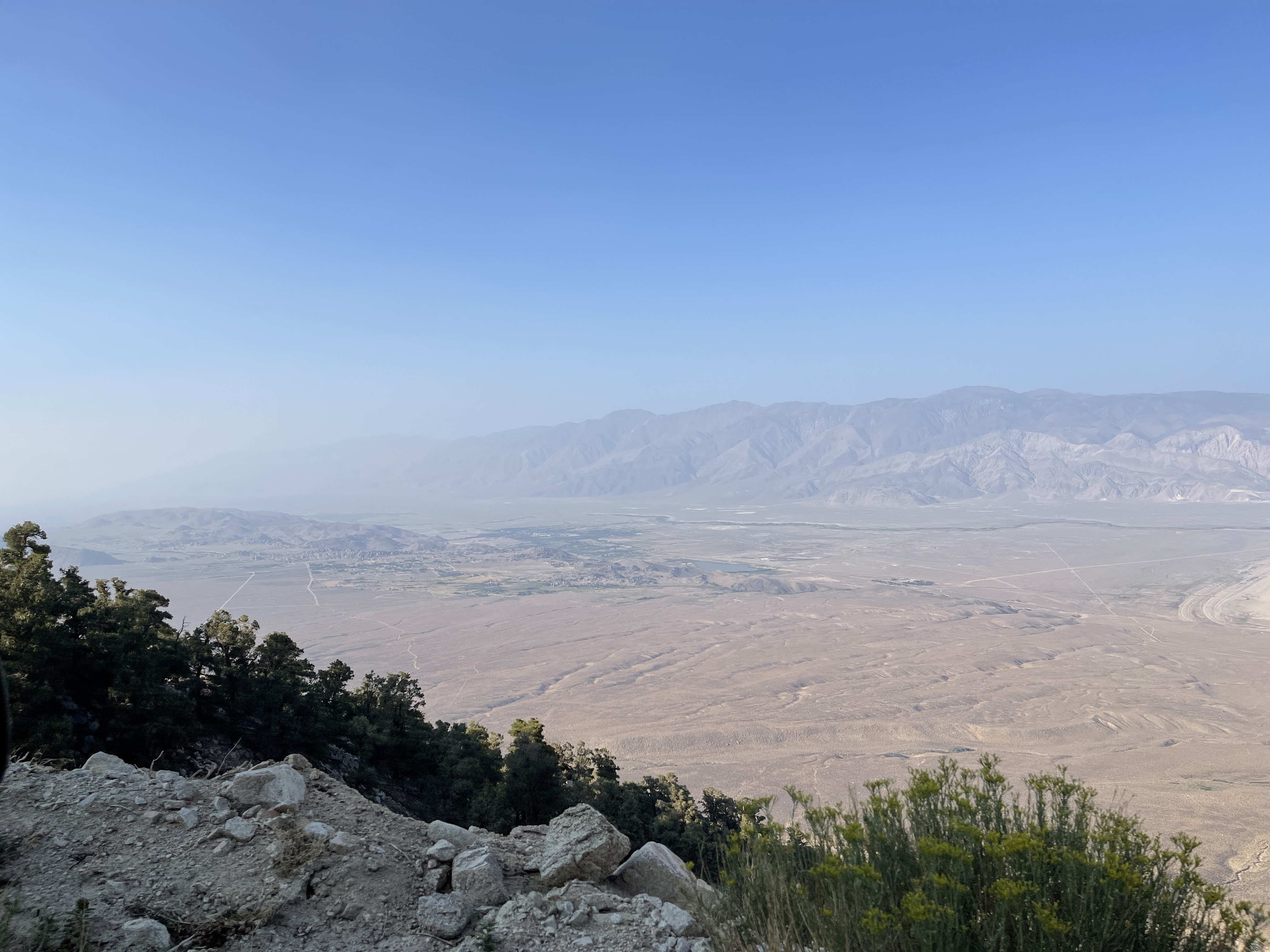LPK picked us up in Bishop an hour earlier than planned which was great. It was hot! And we were holding up under a tree near the closed car rental office. he shuttled us to the trailhead for $80 each. About a 90 minute to two hour drive. We could not see the Sierra’s through wildfire smoke that had blown in from the Dixie fire. We left the valley floor at 3,000′ and climbed the side of the mountain range past the Alabama Hills to 10,000′. What a road! he dropped us off about 6:30PM. I handed him $200.