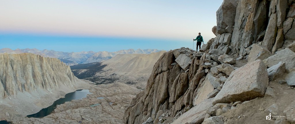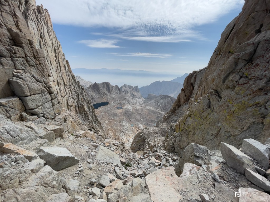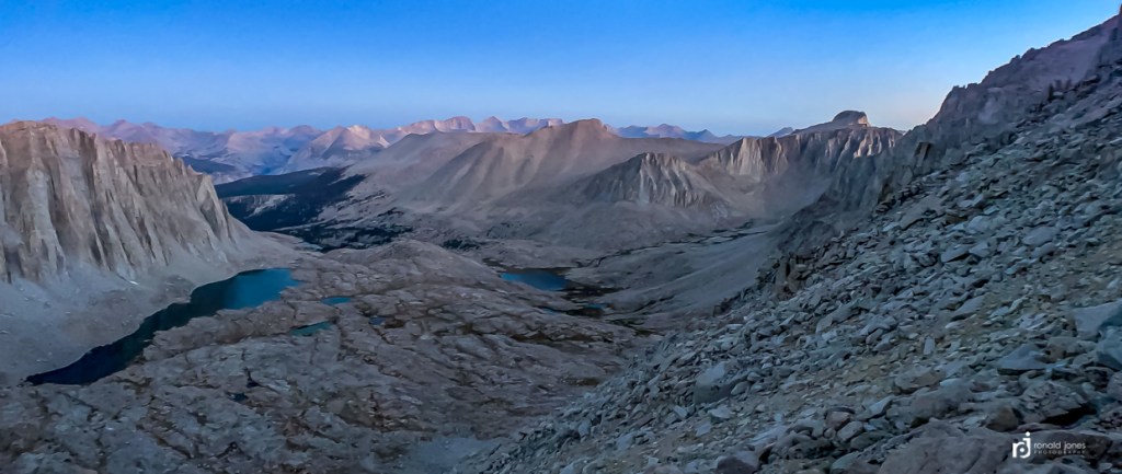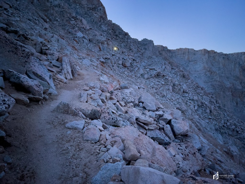We were hiking up by 3:45AM. I tried some night photography with my iPhone, which is supposed to be capable, but I never had time to fully figure it out prior to leaving an only ended up with one photo I could share, and it’s not very good. But it shows the milky way. Part of it anyway. The hike up was not bad. Part of the reason we delayed starting is someone who was descending from Guitar Lake the day prior said there was a slide area that was hard to navigate in the dark. This would be one in a long line of bad information we’d receive throughout the trip.