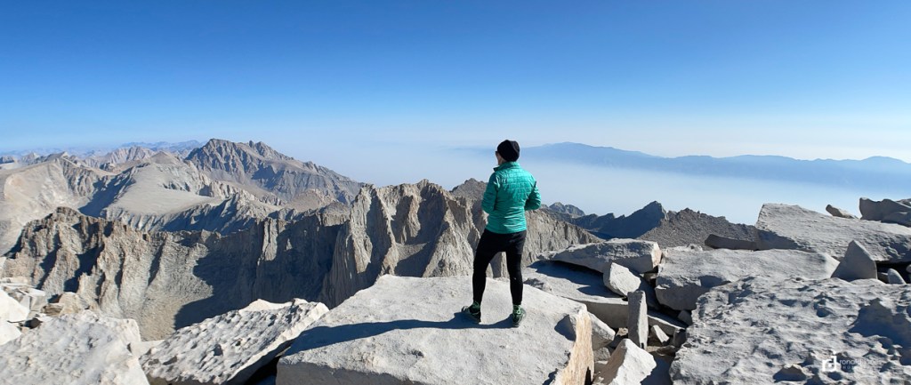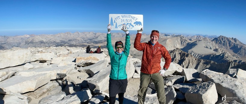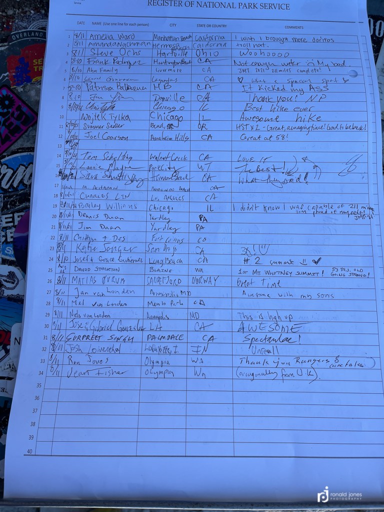 While we missed the Whitney Summit Sunrise, the sunrise we experienced on the climb was absolutely spectacular. As it turned out, it was the perfect timing. We were in the last 1.5 miles when the sunrise crowd was descending. This including a group of Scouts who spent the night on the summit. BRRRRR! I don’t recall our time of day for the summit, probably around 8:00AM. For a brief moment, maybe 3-5 minutes, we had the summit to ourselves. Shortly after, another couple, and then solo guy, showed up. Phil and Tish, and then Josh. We ended up talking with them quite a bit, and became good trail friends for the next couple days until our schedules veered in different directions. We met up again at VVR, a few days later.