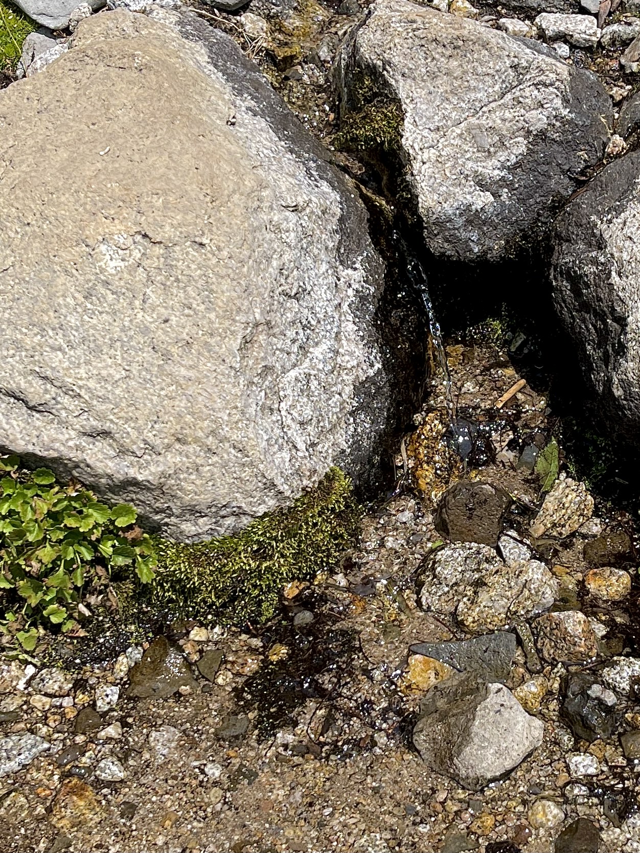 About 0.3 of a mile from the Bear Ridge junction we came across this little seep right next to the trail. There was moisture coming from the ground and someone had inserted a small, maybe Β½” black pipe into the soil and this in turn created a pretty nice little water flow. Probably fine to drink as is. We actually still had enough water, we hadn’t carried but a liter and a half, and figured, we still have some, and it’s all downhill from here.