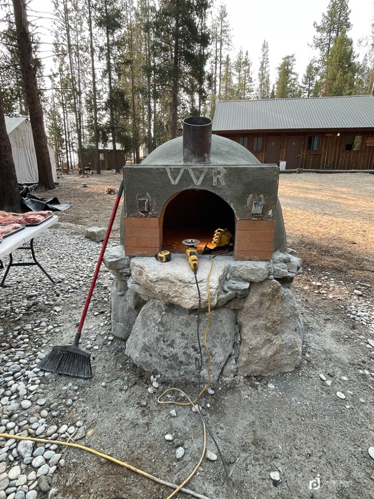 Around mid-morning, one of the staff began prepping food. Brisket that would be Sunday’s lunch. And then BBQing chicken and ribs for Saturday night. They’ve been busy building little things like this igloo cooker and the BBQ pit.