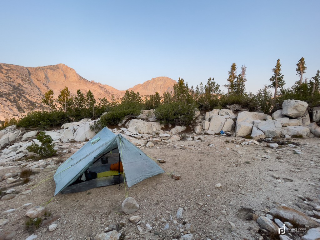 I had intended to include my hike to Thousand Island Lake in this post, but think it’s better to combine it with other segments. I am including two photos below of the campsite, but these are the from the next morning.