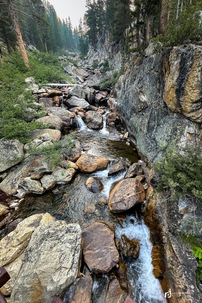 I opted to not go to see the Devil’s Postpile up close. You can read about it here. It was a mile up and mile back and I knew I had another 3-4 miles and not a lot of daylight. I did see it from afar, which was fine. I did actually walk through the national monument however. Even though no one was around, I made sure to show my annual pass – you can see it on the sign. After dropping to the river and crossing it, I had a pretty long climb up. I think I climbed for 2.5 miles. My goal was to get to a water source, because I chose to not carry much water. I finally made Minaret Creek at 8PM, and it was dark. It does get a little worrisome when you’re solo, and walking late into the evening in a forested area. It sure felt like a place one could see a bear or cougar.