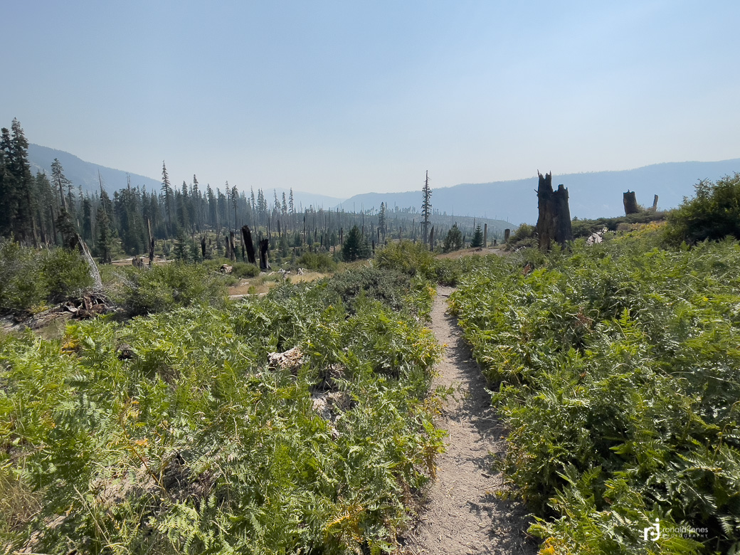 I had descended and then started climbing again. I was going up a hillside to around 10,000′ before a flat stretch and getting to Virginia Lake. The smoke had become bad. As in, very bad! I had my buff pulled up and was about to start digging in my pack to pull out my Outdoor Research face mask I carried for traveling in populated areas, airports, etc. It was deep in my pack. I had started to think that my hike might be done. It was not worth risking health. I might need to exit at Red’s. I was starting to get bummed out. Then, I met a group of 5 SOBO hikers. They were all wearing KN95 masks with exhaust ports. They offered by a standard KN95. I offered to pay but they said to just pay it forward somewhere. Since We had provided fuel and food to folks back at Charlotte, I felt okay for accepting it. The mask made all the difference. I had thought about putting one in both our packs for just this reason. I sure regretted it. On future backpack trips where wildfire smoke could be an issue, I’ll be carrying a N-95 mask.