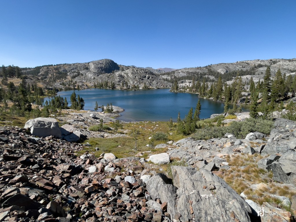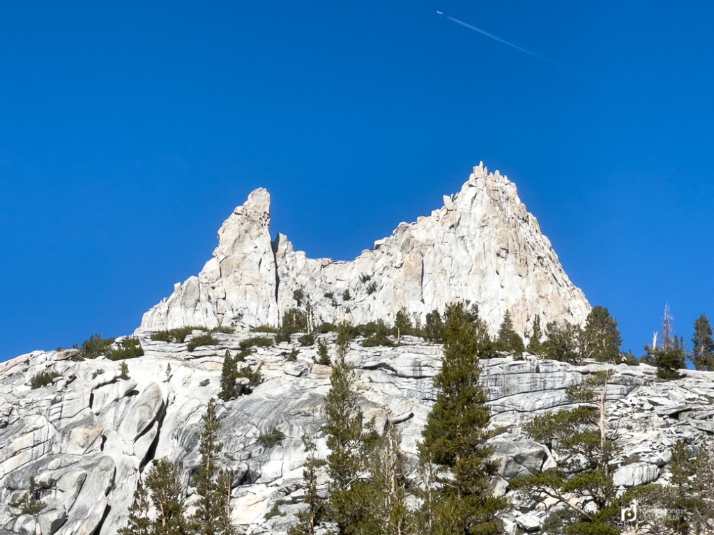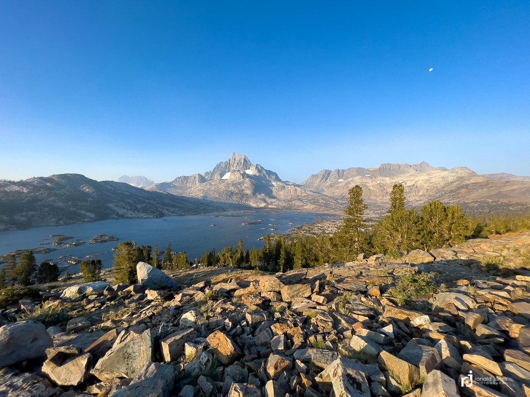 Even though the day was only 13.5 miles, it was close to 4,000′ gain, and as I recall, I didn’t make Thousand Island until around 4:30PM. It had gotten very windy. Very windy! It wasn’t clear where the more designated or popular use area was for camping. I decided to go off trail to the east side of the lake to camp. Mostly because it appeared that once I crossed the outlet to the north, there wasn’t much camping because the trail went up and away from the lake. And technically, one is supposed to avoid camping within a quarter mile of the outlet. And it was very exposed there anyway. But it was also exposed where I ended up. Maybe a little more protection. Where I pitched was pretty exposed, but I figured, it did have some protection and the wind would eventually die down. Welp, it didn’t. The wind blew all night long. I actually spent a long time choosing a spot. And about the time I was fully pitched, another solo backpacker walked up. He too, was looking for solitude. We chatted briefly. He was telling me that he lived in Placerville, CA., where a new fire was threatening both the town and his home. He said it was better to be out here than in town. But he was unsure if he’d have a home to go home too. Apparently it was close to town, and it was raining down with fire ash. I learned after getting off trail that Placerville was saved, so I can only hope, and believe, his home was spared.