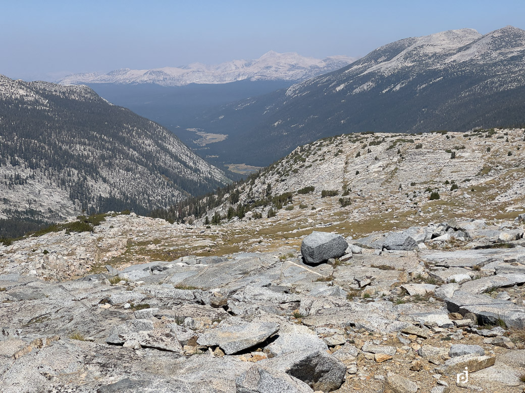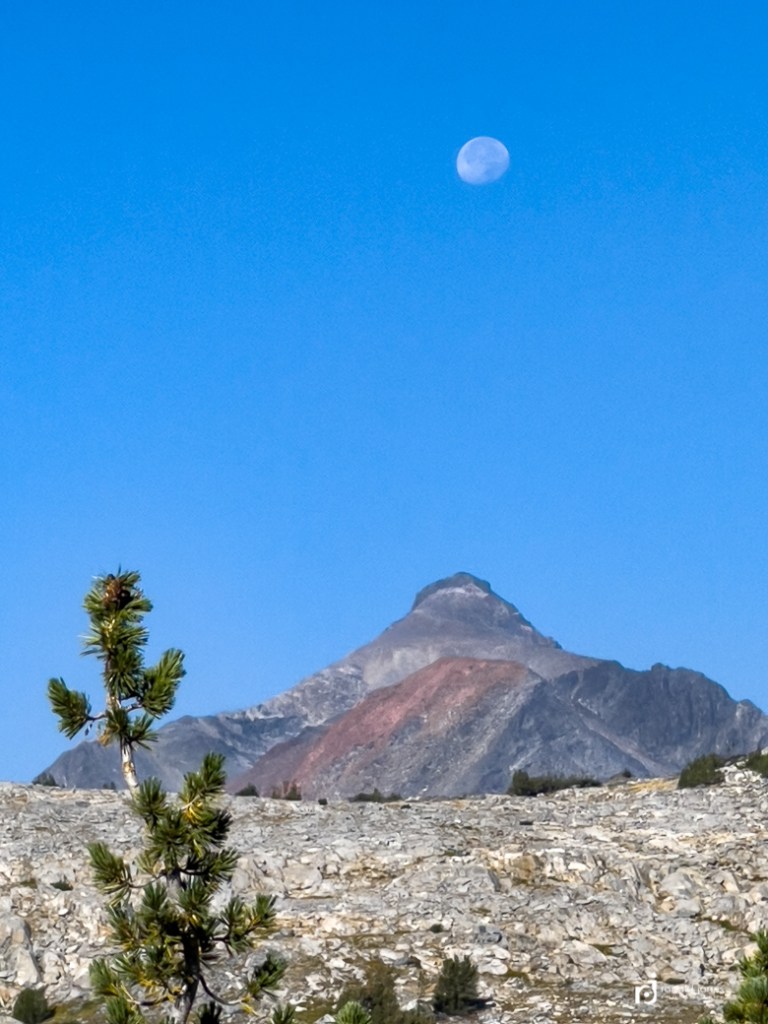 I hiked without seeing too many folks early on. Then I ran into more as I neared the Donahue Pass approach. A group of 3 or 4 were catching me. Actually, I had stopped and they passed, but then they stopped. They didn’t stay stopped long so I just kept on trucking. Once again, it’s the competitiveness in me. I began walking with a lot more intention and soon put some distance between us. But the brief stops for photos, to grab some water, adjust something, soon I found one of their group not far behind me. And by this point we were making the final mile and a half push to the pass. So once again, I began focusing on fast and sure steps. I made the summit, took my pack off, dug out some food and sat down. Not long after I git settled, a woman who was with three others caught up. She mentioned how I had moving pretty fast uphill. I acknowledged and said it was sort of the last big climb of the trip for me (not necessarily true) and it felt good to push hard. Her group caught up and we all sat, ate and chatted a bit. And then one by one, we departed. I ran into a group of 4 SOBO PCTers on the descent. Three guys and one woman. I ended up burning at least a half hour with them. Social vortex! They had started in Washington at the Canadian Border. But in southern Oregon had to skip a big section n norther California due to fires and just got back on trail a while back. They were just out for as long as they could be out. No plans until Thanksgiving they said. And even one, said, she didn’t have any plans.