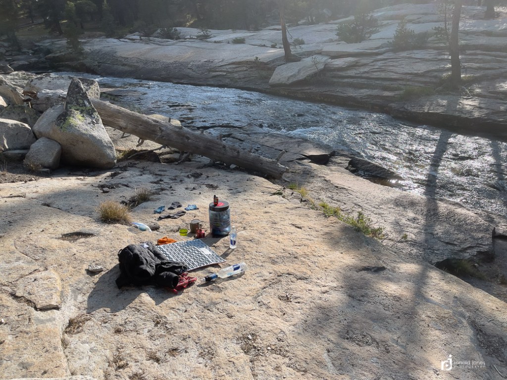 I had intended to go all the way to Tuoleme Meadows, but the folks I had spoken too on top of Donahue had made mention you’re not supposed to camp within 4 miles. I had read that but had forgotten. Not wanting to walk well into the dark again, and unsure about Tuolome and how late the store was open, and where I might camp, I decided to stop short along the Lyell river in Lyell Canyon. I found a really nice spot that was on the opposite side of the river from the trail. I was able to get a full body rinse and finally, hang out by the water in the warm sun.