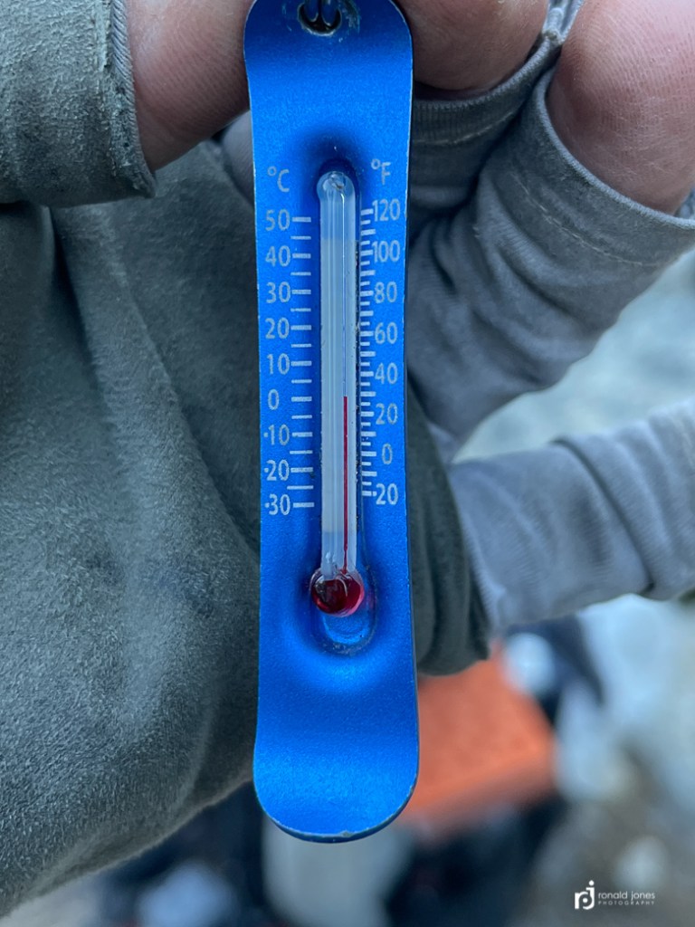 I woke up to some pretty chilly weather. Water had not frozen, but it felt pretty cold. I check my thermometer around 7AM, which is well after dawn and it was at 32 degrees, so I suspect it was maybe 30 at dawn or just before. Someone later that day said it was down to 28. It did seem cooler the further I hike that morning, but not that cold where I camped.