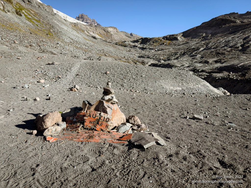 The photo below is where the Paradise Glacier used to be near decades ago. It is a warning sign that it’s dangerous to enter the ice caves. This spot is about ½ mile past the maintained trail, and beyond this point is far less trodden.