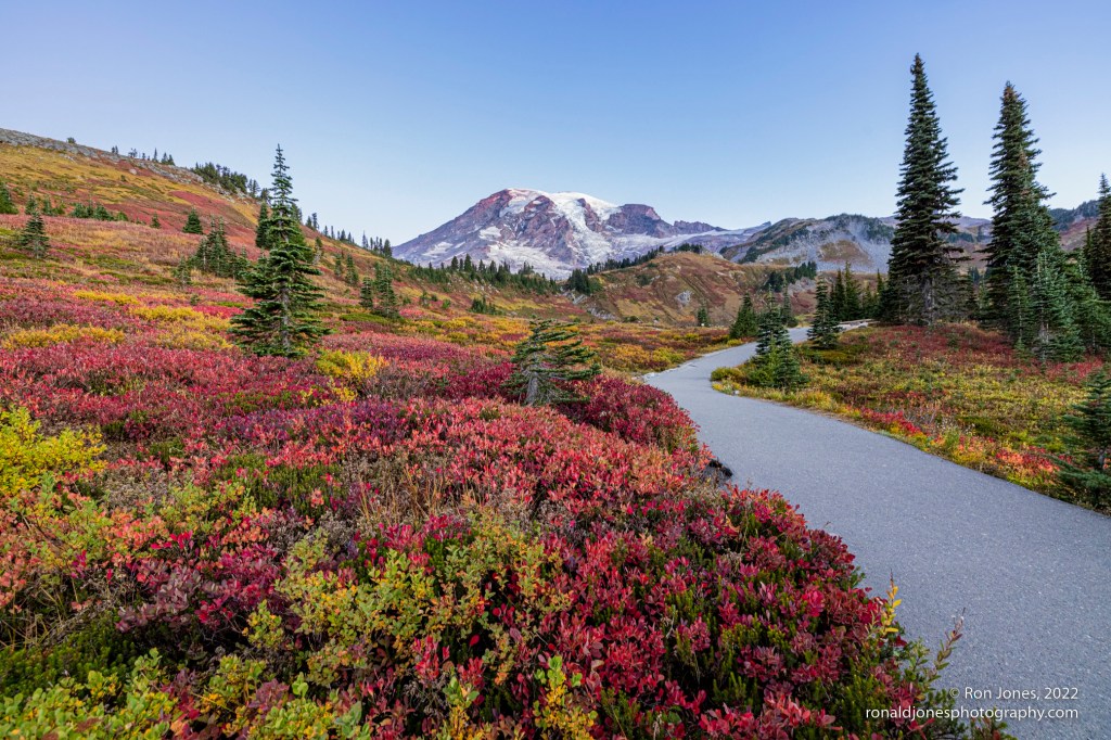 Further up Skyline toward Paradise Glacier Trail. Here, the light on the mountain is strong and the golden hour is ending/ended