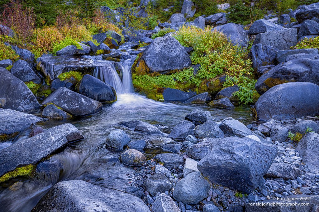 After shooting the river, I hiked up and joined the Paradise Glacier Trail. From here I would hike the end of the maintained trail, and then a little further up. The end of the glacier is easily a mile past where I stopped, ate an early lunch and turned back. Upon the return I chose to take the Golden Gate trail. It lies between Alta Vista and Skyline.