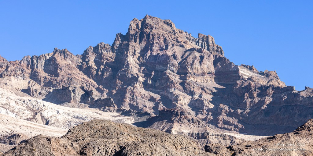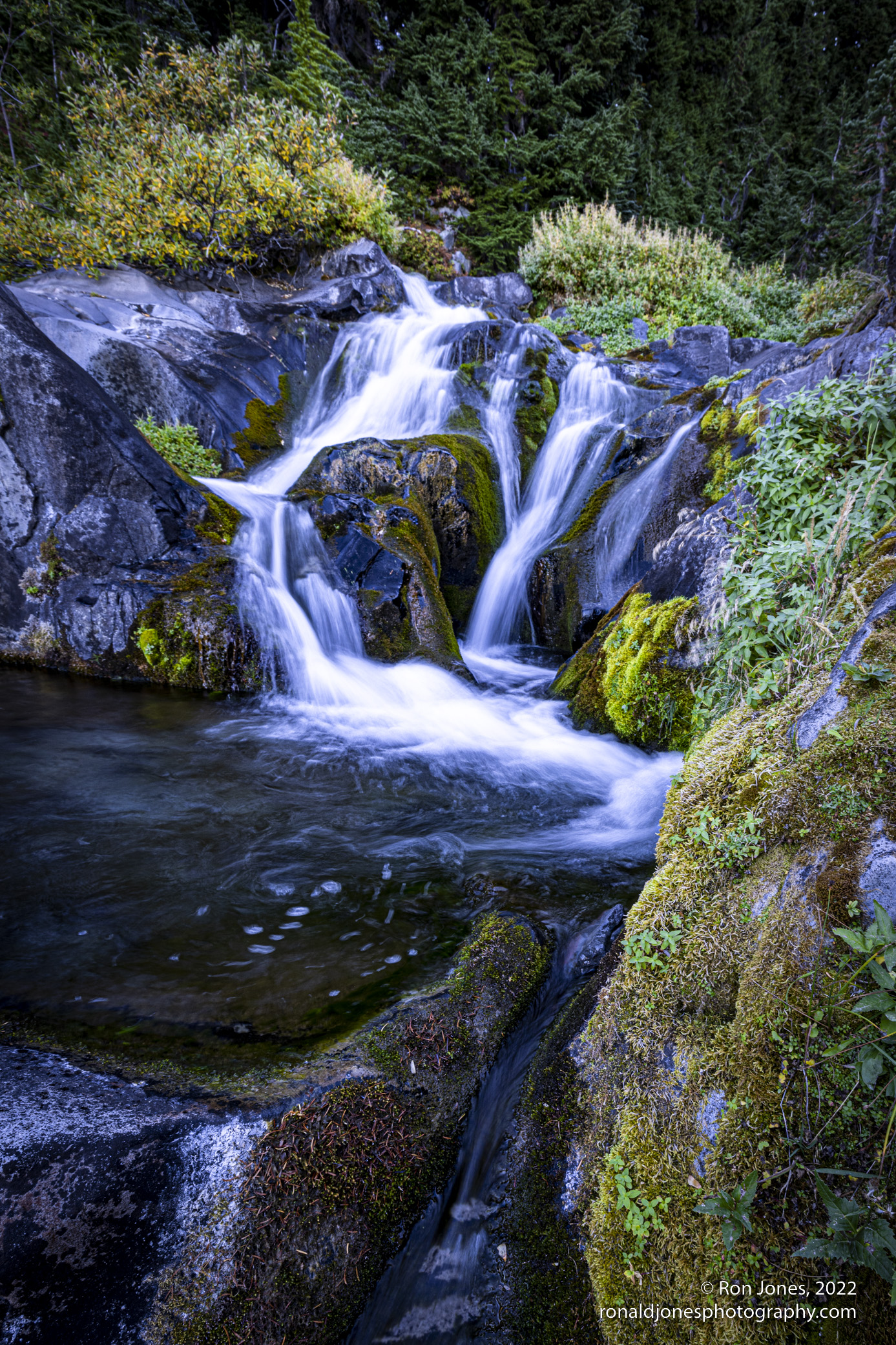 Soon I came to Myrtle Falls. The access to below the falls was closed which is fine because you can’t see the mountain at the bottom. Above the falls was an amazing scene. The image below is a single shot, with exposure emphasized on the highlights. I brought up the shadows. It wasn’t long after this shot that things got more challenging. And once light starts striking the foreground, the harsh shadows become near impossible to work with.