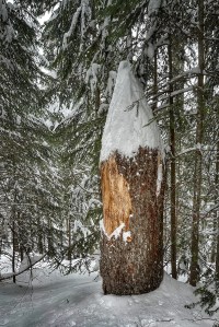 While scrambling Bearscout Peak our group passed this amazing remnant of a broken tree, which left a stump about 15′ high. Piled on top of this tree stump was a bunch of snow – built up like a bunch of sand that had been poured from a bucket. White crayon instantly came to mind. Seeing these miracles of nature is one of the things I love about the backcountry – nature’s art!