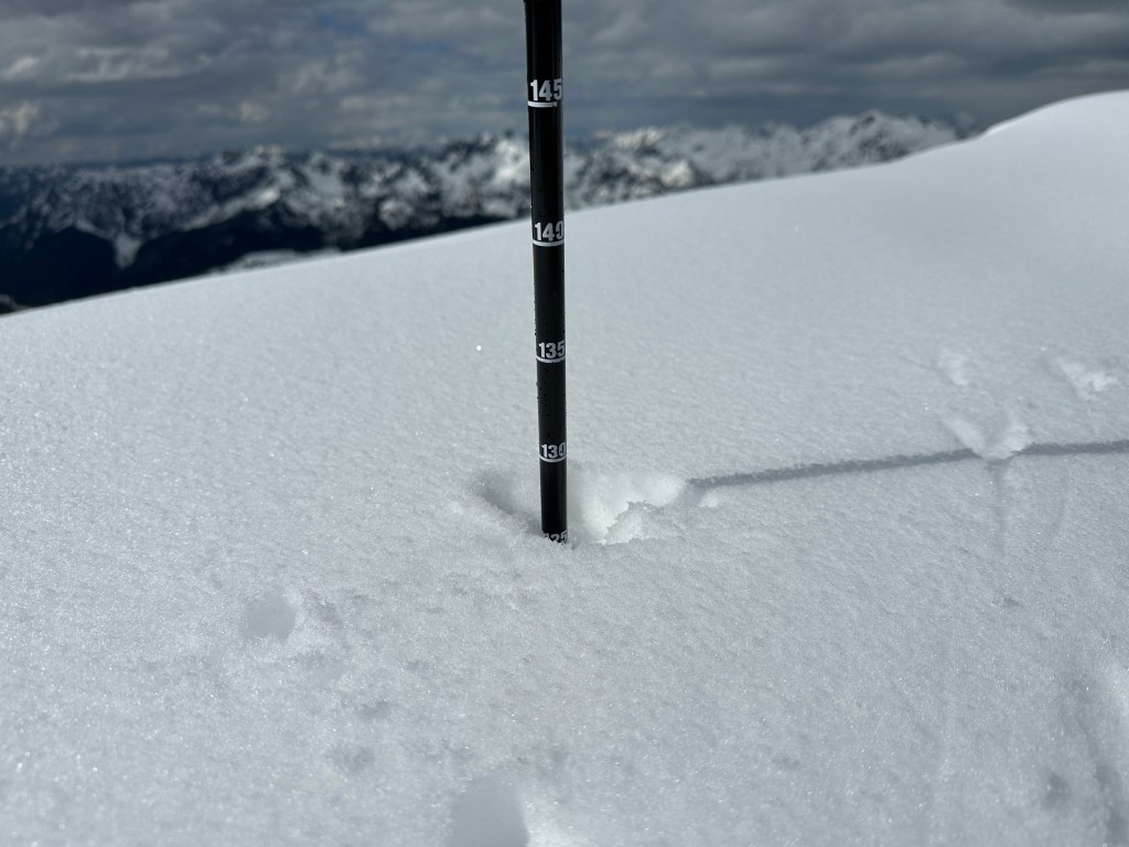 We assessed conditions from afar. It looked stable. Old rollerballs but no real new signs of roller balls. I dug a quick hand-pit and found bonded snow down about 18”. As far as I dug. Trekking pole probes felt mostly consistent.