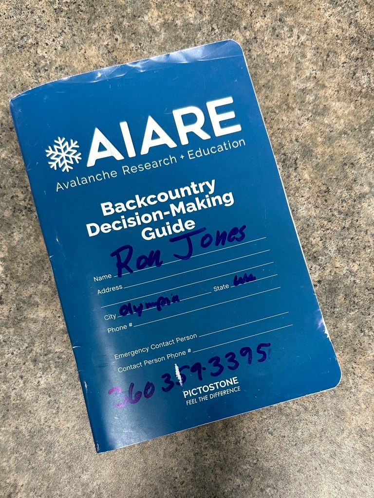 I was a little nervous about snow conditions. Over the weekend the Northwest Avalanche Center was showing moderate conditions at all levels and ranging from possible and size D1 and D2. But the trend was improving. Unfortunately NWAC only provides beta on the weekends for the Olympics. And the ranges is so diverse, any beta from the northern part may be dramatically different than the Hood Canal area. We both agreed to a pre-trip plan. I have been using my AIARE-1 Backcountry Decision Making Guide book since completing AIRRE-1 in January. I use it on every snow outing as recommended, whether I’m the leader or not.