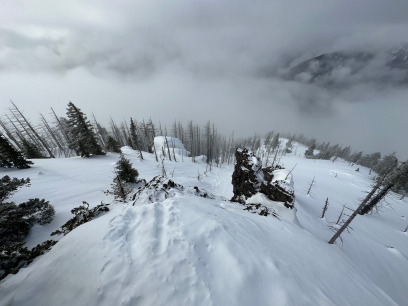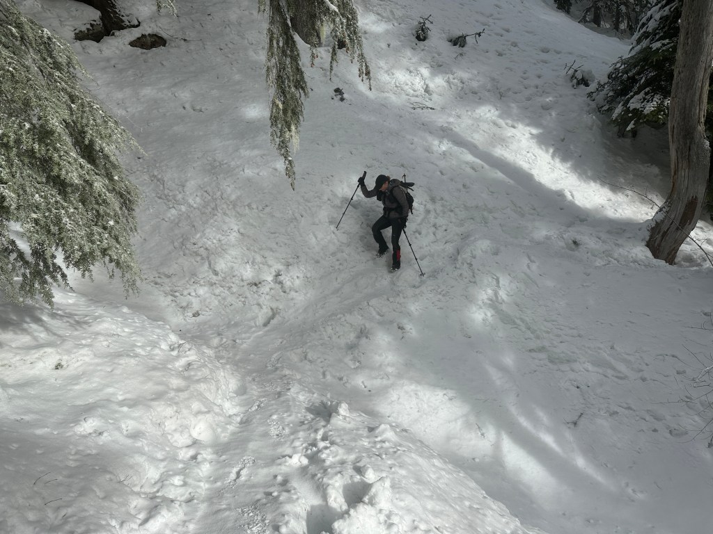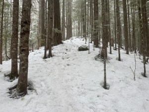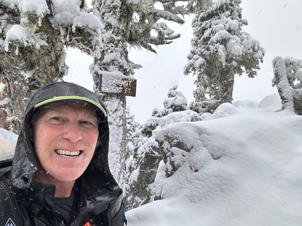 By 2,400’ or so we hit solid boot packed snow that was firm and a bit icy with just a light dusting of new on top. And slippery! Technically we should have put on microspikes at this point, but was manageable so waited until Horse Camp we took only a brief break since I was still on my 16:8 fast. That’s 16 hours not eating followed by 8 hours of time to take in calories. Ultimately I did the entire 5 hour up and down on no food since 8:30pm the night before. And did surprisingly well.