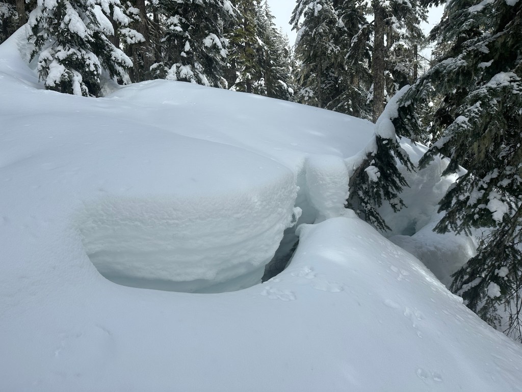 Above Horse Camp (HC) we eventually passed where the earlier couple had turned back so we had a1/2” new on a solid boot pack. the snow tended to ball up on our traction devices, but easily knocked off.