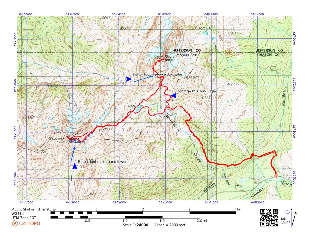 I wrote a fairly detailed trip report for both Mount Skokomish and Mount Stone in Peak Bagger. Here are a few highlights of each peak