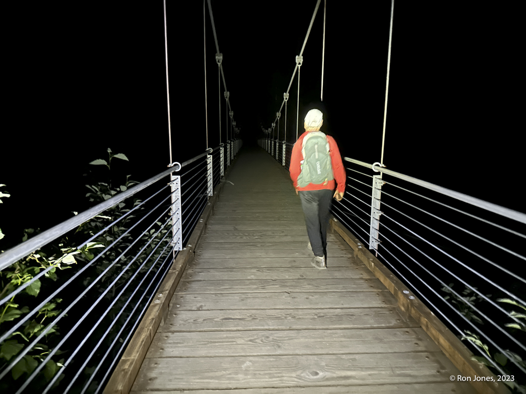 We walked until 9:10PM before putting on headlamps. It was absolutely dark. Back at car around 10:15PM.