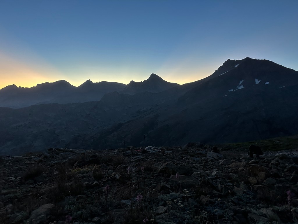 The night had been clear and gorgeous. I recall waking up and looking up, but unfortunately, I just didn’t feel like staring at the sky. I did see one amazing shooting star. It was a nice sunrise too. My phone was at my feet and turned off and I lacked the energy to retrieve it for a photo during the night or the best light of the morning. I did get this shot below.