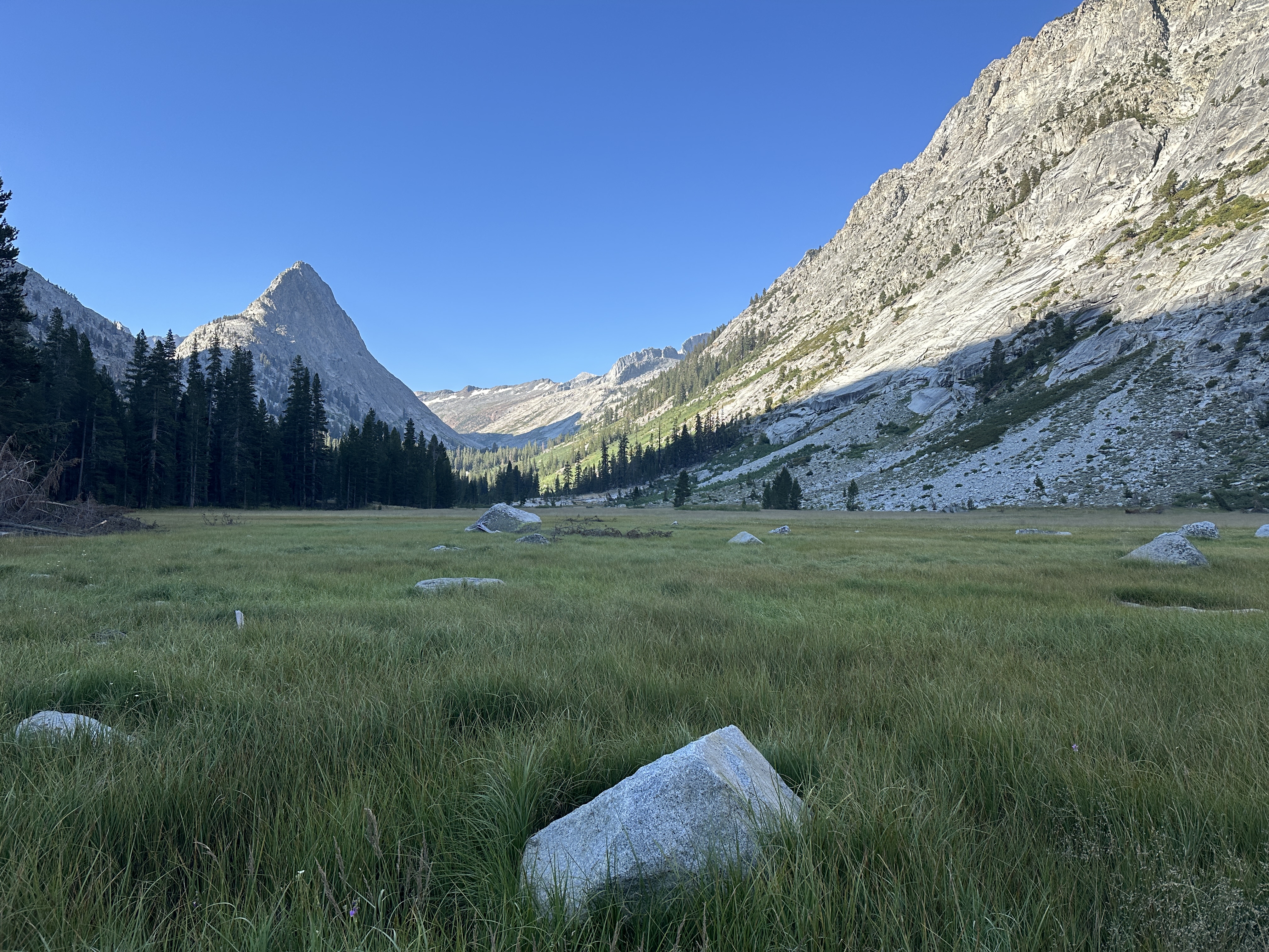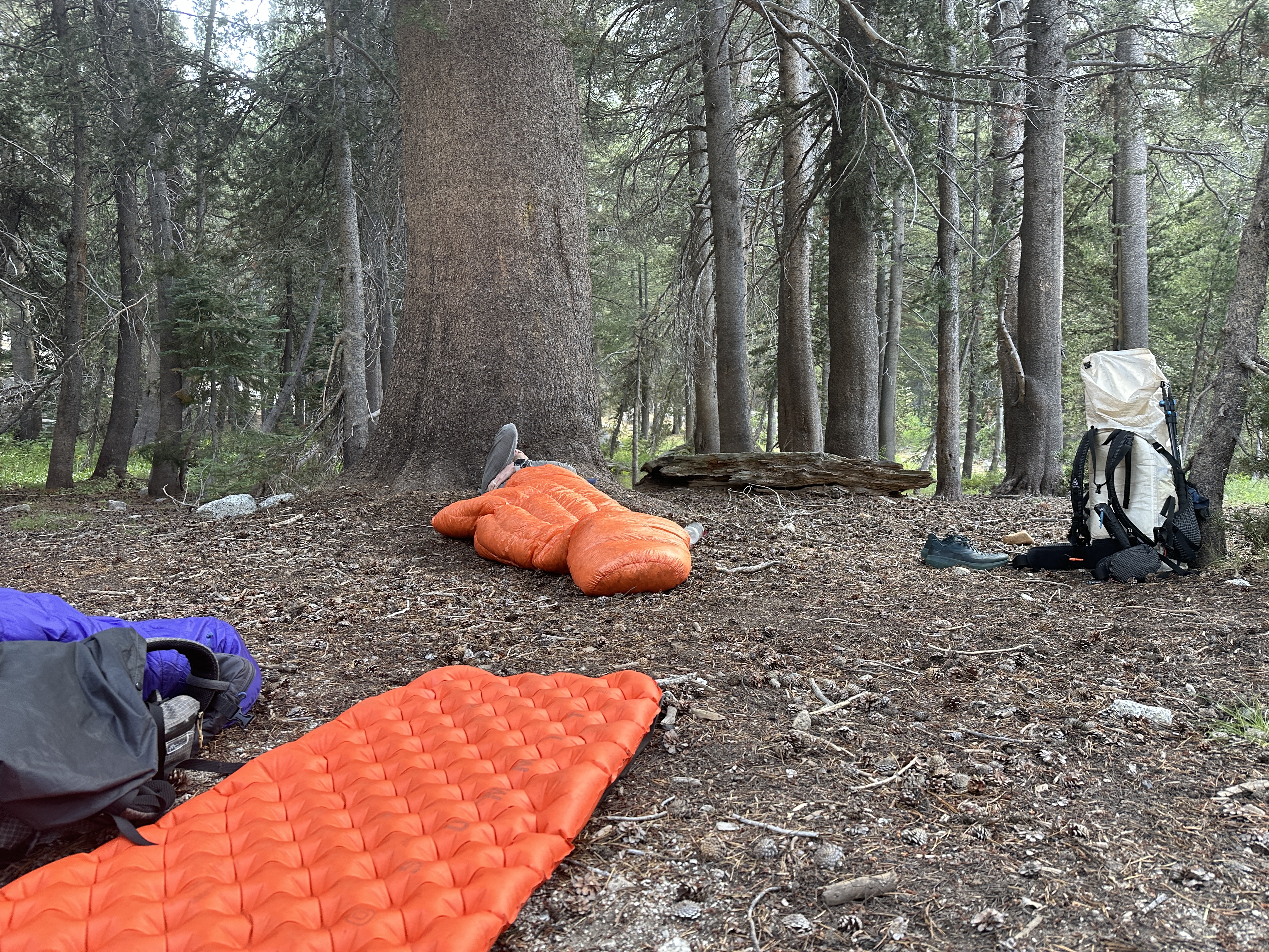 We arrived at Sphynx Creek around 5PM. We only had 7 miles remaining, and we’d just hiked 16 miles, 3,150′ gain over 10.5 hours. There was breif talk of zombie walking to the cars, but that was absolutely not appealing to me. It woud have put us at the car about 8PM, then shuttle to the other car at Lodgepole (2 hours), and then to Fresno, another 2 to 2.5 hours.