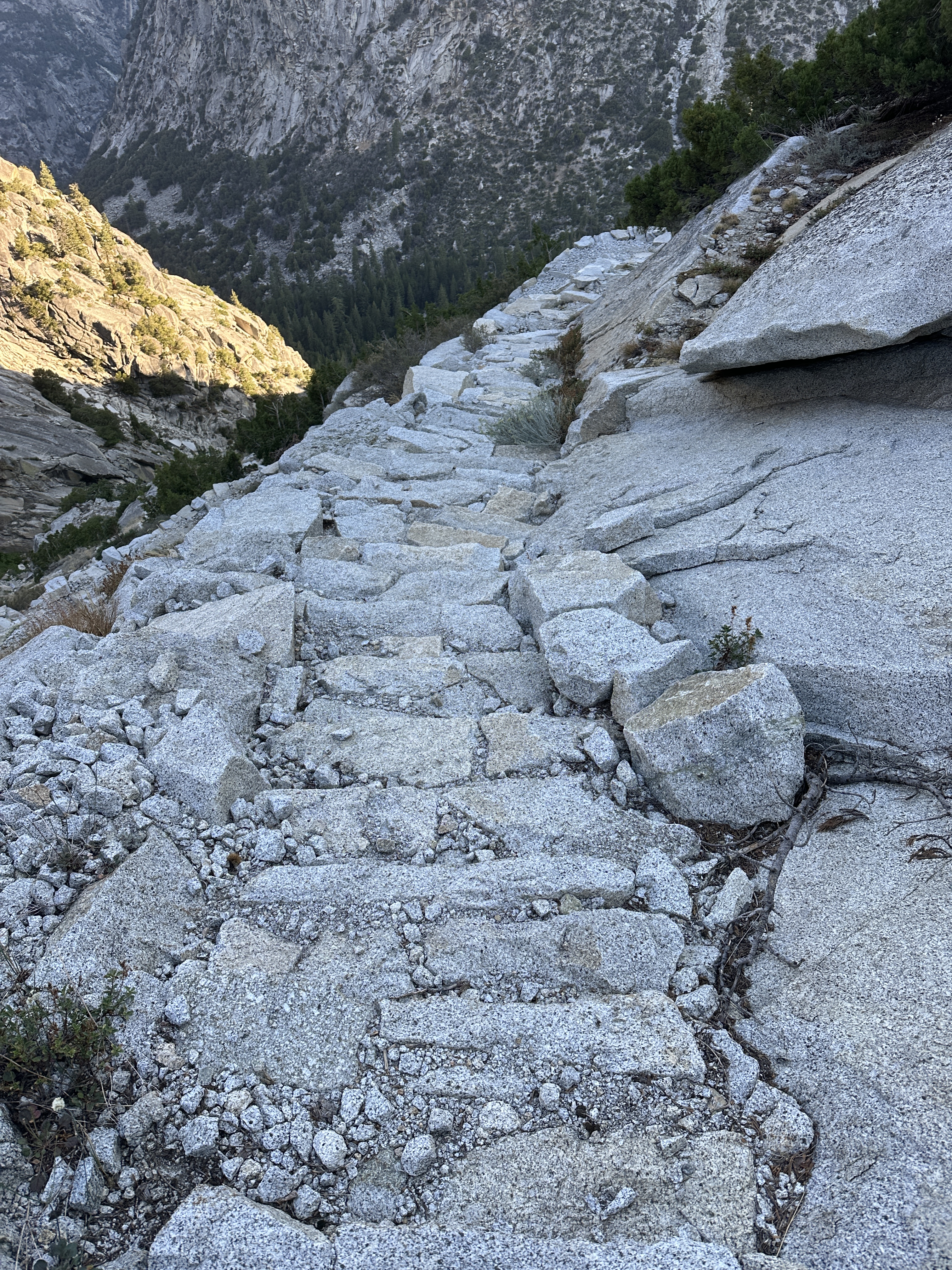 We decided our last day we’d be hiking by 6AM and we were close. A quick coffee for me and J, and then quick food. The hike down descended about 3,600′ in 7.4 miles to Roads End. From there we drove back to Lodgepole, stopping at the Grant Grove to see the large Sequoia’s on the way. I missed getting a photo of General Grant (Large Sequoia), but a few days earlier I captured General Sherman – a much more magnificent specimen.