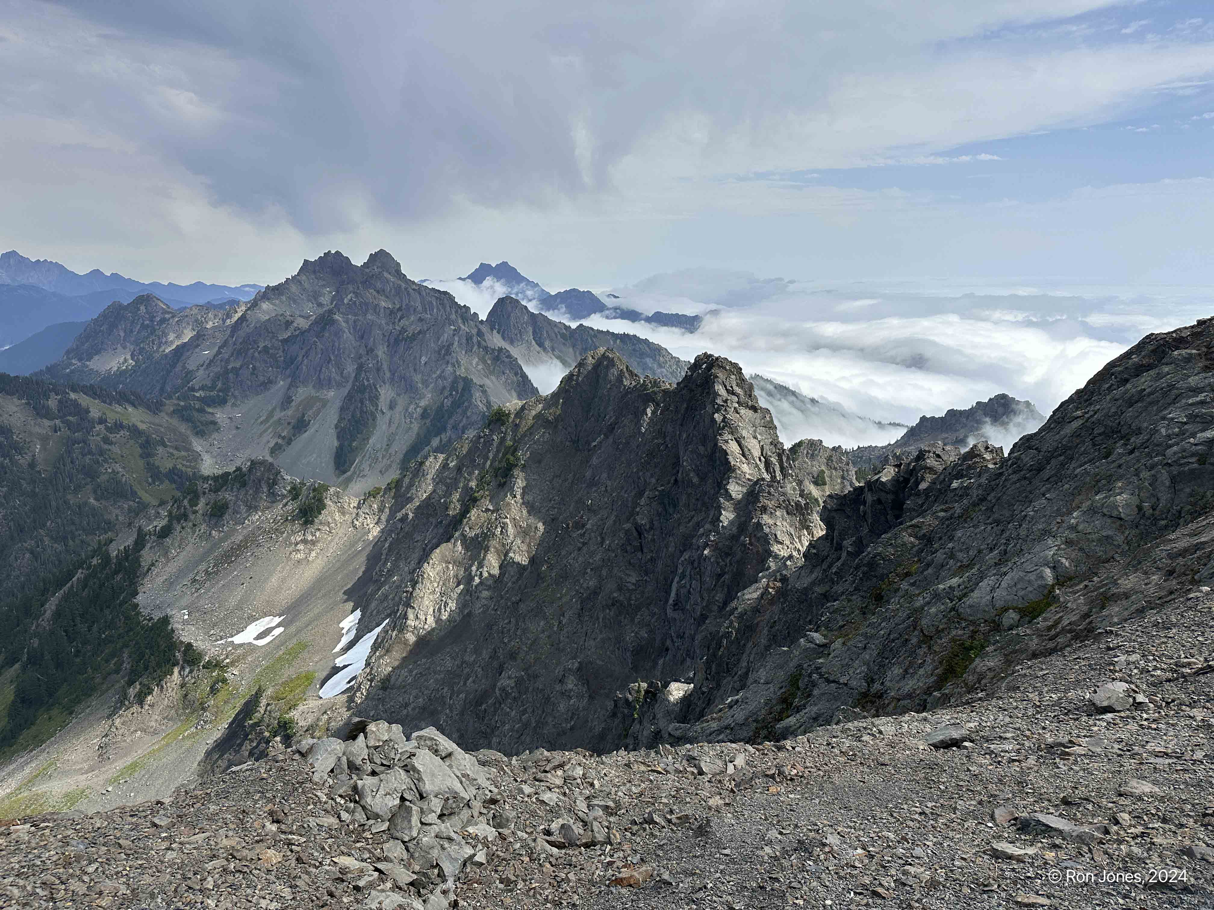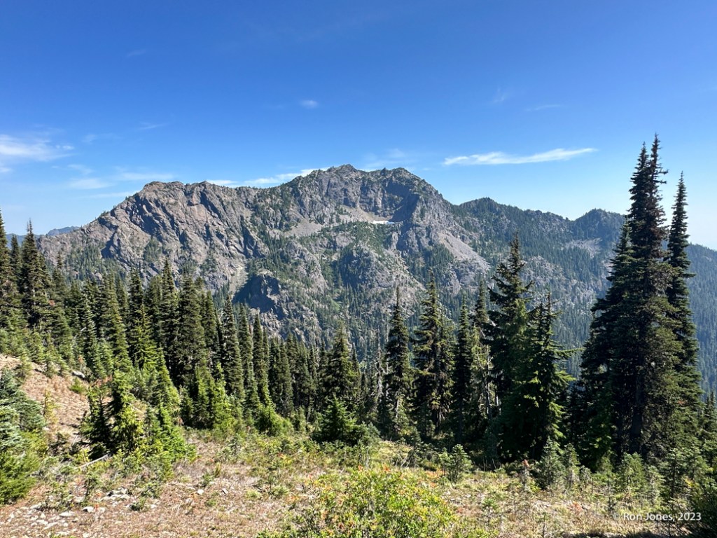 Looking at the ridge, and north face that makes up Mt Skokomish, with Mt Stone (2 bumps) on the left and in the far distance, the Brothers.