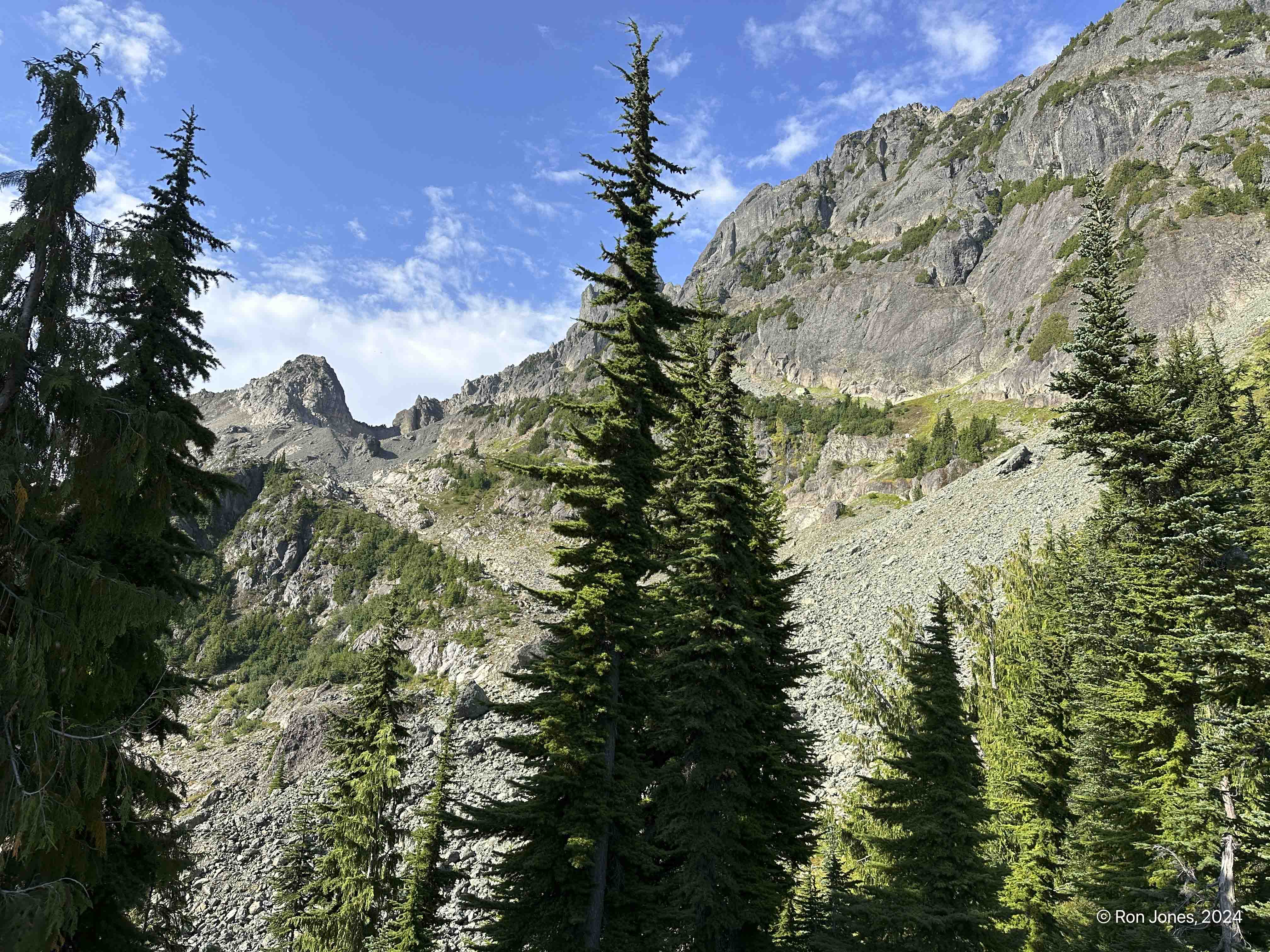 It had been a clear night and quite warm. It was only a mile to where the way-trail ended the the scrambling in the old glacial basin began.