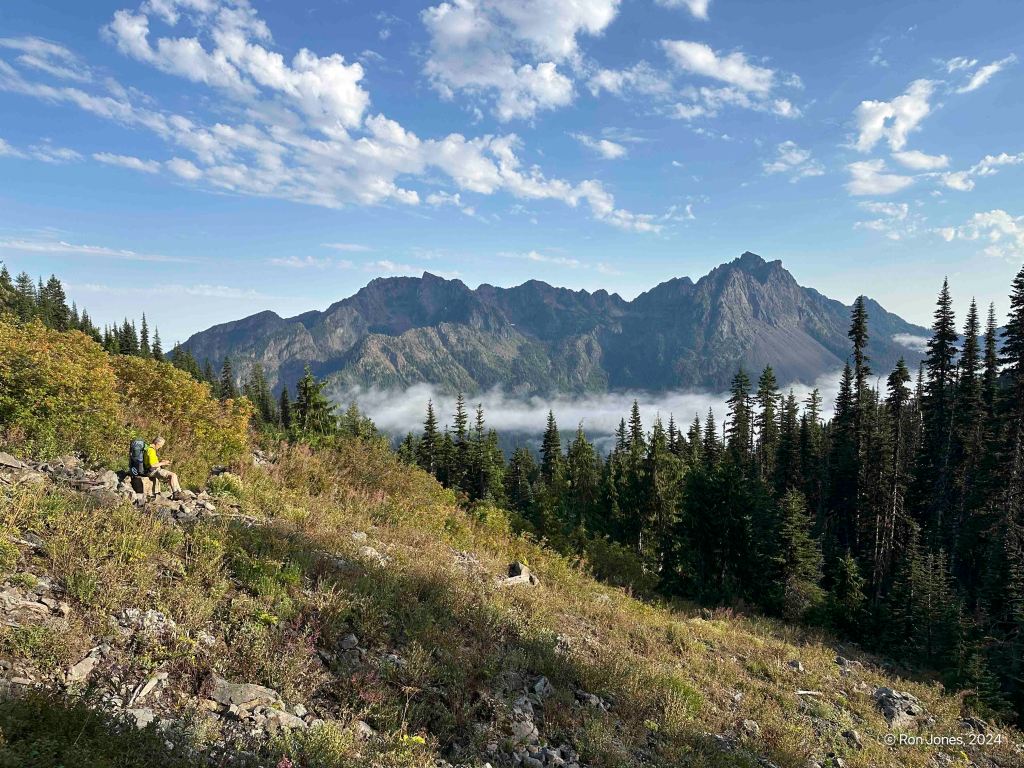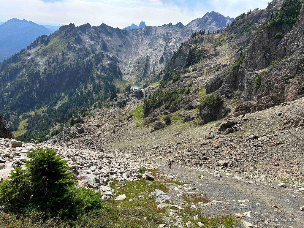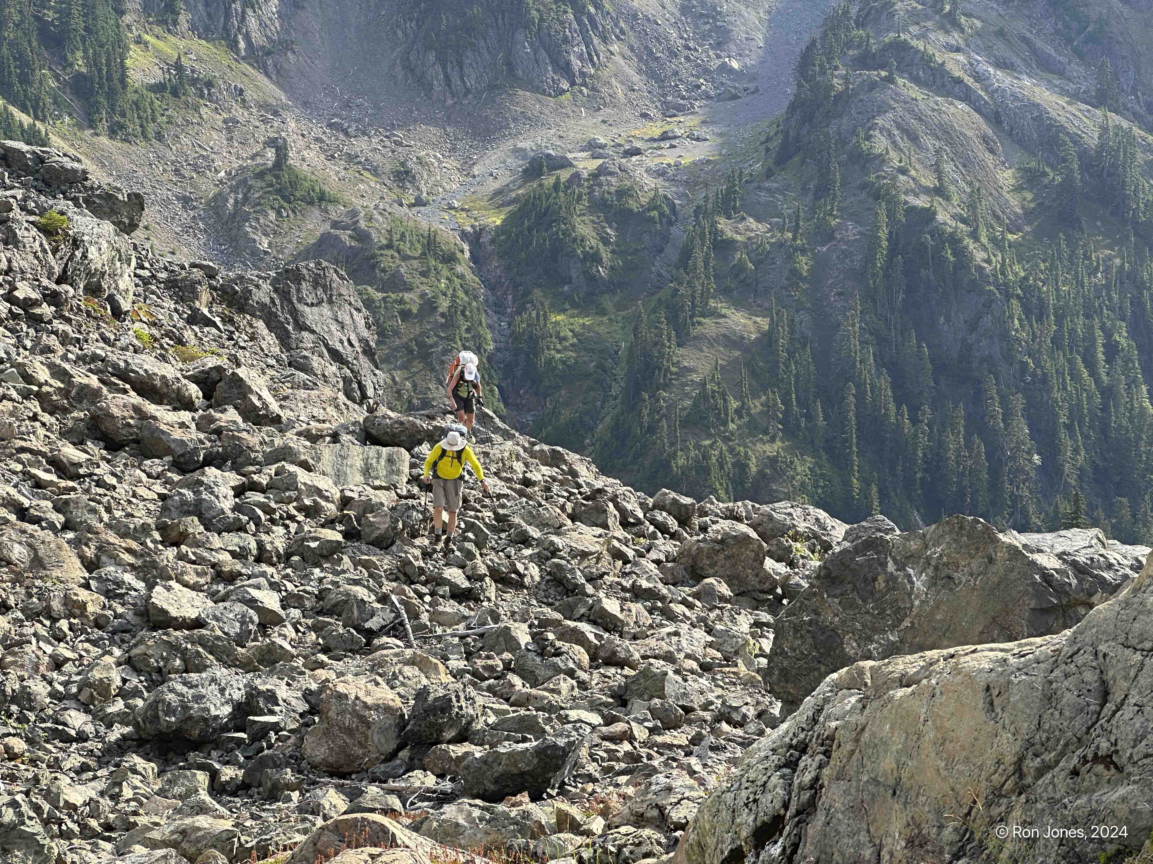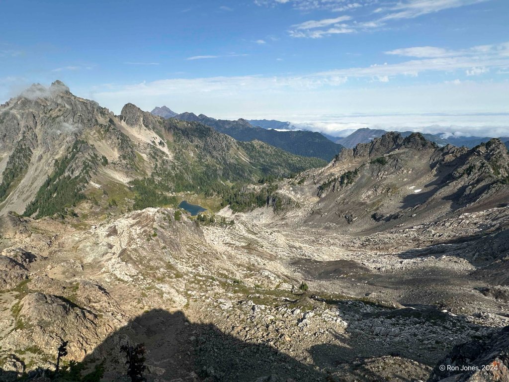 Day 3. We got a better start, but not 7:00AM, but closer to 7:30 – 7:45. The plan was to go to the saddle to access the contour around the backside of Mount Skokomish, tag the summit and descend to Lake of Angels and then down the trail to the road. And that’s what we did.