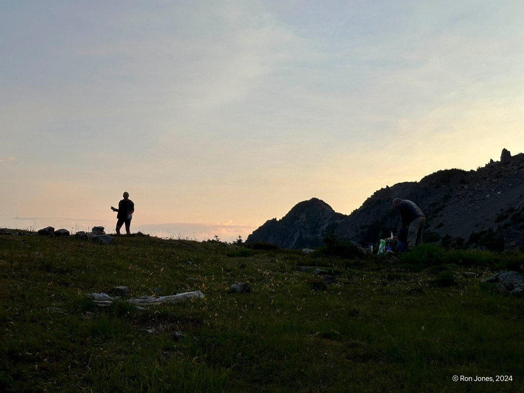 At the beginning of the day, we had expected to make camp early and tag Mount Hopper. It ended up taking about 4 hours to go from St. Peter’s gate to the saddle above Hagen Lake, so Hopper was off the table. There was a great water source streaming off from the west side of Mount Stone, and just 200 yards from our saddle, so we opted to camp there instead of the lake. With a little breeze it would help beat down the bugs, which weren’t too bad until about dinner time.Â